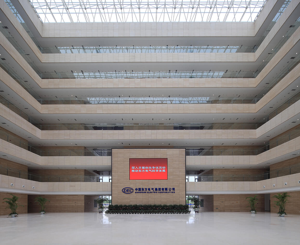 中国东方电气集团有限公司是中央确定的涉及国家安全和国民经济命脉的53户国有重点骨干企业之一,属国务院国有资产监督管理委员会监管的中央企业,是我国较大的发电设备制造基地之一。华开作为东方电气集团总部基地建设参建单位,先后承接了科技展厅及科研办公楼等室内精装修设计及施工。